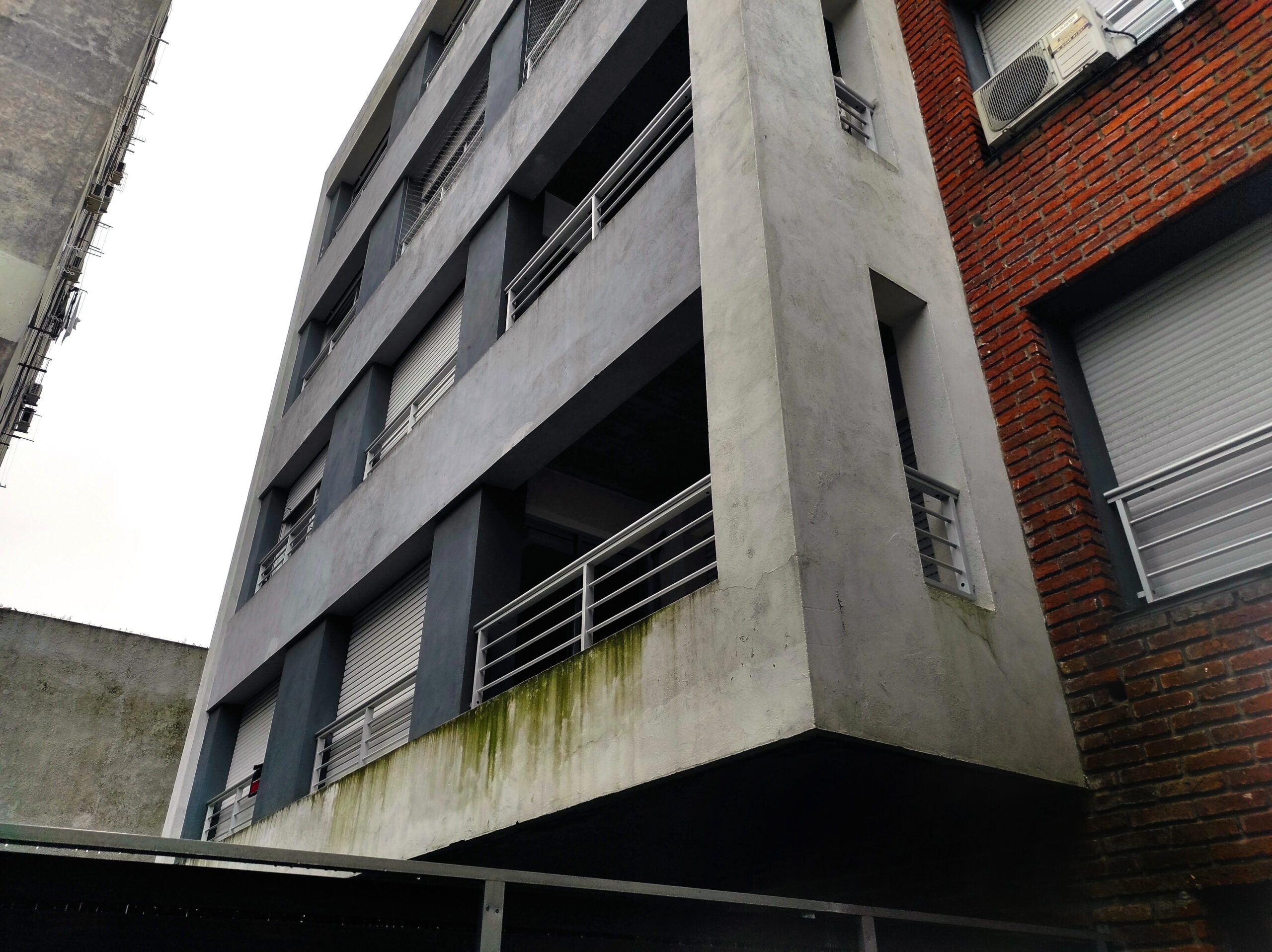 Presentaba multiplicidad de patologías edilicias tanto en espacios comunes como en unidades, a saber: filtraciones de agua intrusa a través de las azoteas de ambos bloques, grietas horizontales en volumen saliente de fachada frontal, fisuras y microfisuras a nivel de fachadas de volúmenes salientes sobre azoteas, crecimiento de moho y biodeterioro generalizado; así como problemas de similares características en el interior de las unidades.