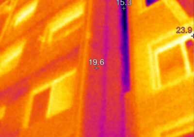 Estudio cualitativo-cuantitativo y diagnóstico integral de patologías edilicias a nivel de fachadas, azotea y unidades, en base a termografía infrarroja y protimetría. Confección de Memoria constructiva y rubrado. Supervisión de obras correctivas.